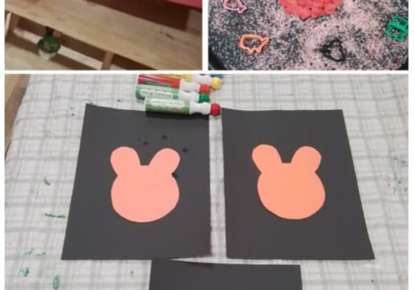 For art, the children used bingo dabbers to design their own Mickey pictures. This activity encouraged creativity, colour