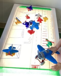 Our Preschoolers took off learning about different types of transportation. They used their imagination to fly airplanes around the airport, built towers of blocks on construction trucks while enhancing their letter and number recognition, splashed around exploring sensory play while washing planes, trains, and automobiles, and more!