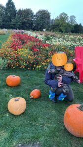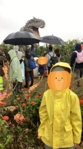 When we arrived at the pumpkin patch, each family had the chance to pick out their very own pumpkin to take home. There were big ones, tiny ones, round ones and misshaped ones in a variety of colours! Some children continued walking into the field and came across some large and seemingly alive dinosaurs! Families also enjoyed the flower gardens which offered some beautiful photo opportunities with their loved ones.
