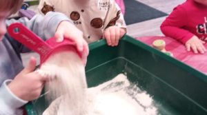It encourages children’s thinking, problem-solving, and creativity. It also allows children the opportunity to use the knowledge they have and apply it by counting, measuring, following a sequence, following directions, and cause and effect. At Tiny Hoppers Rockland we love making playdough with the children, it’s exciting to add glitter, and color and see what we get in the end. The best part is they get to play with it when it’s done!