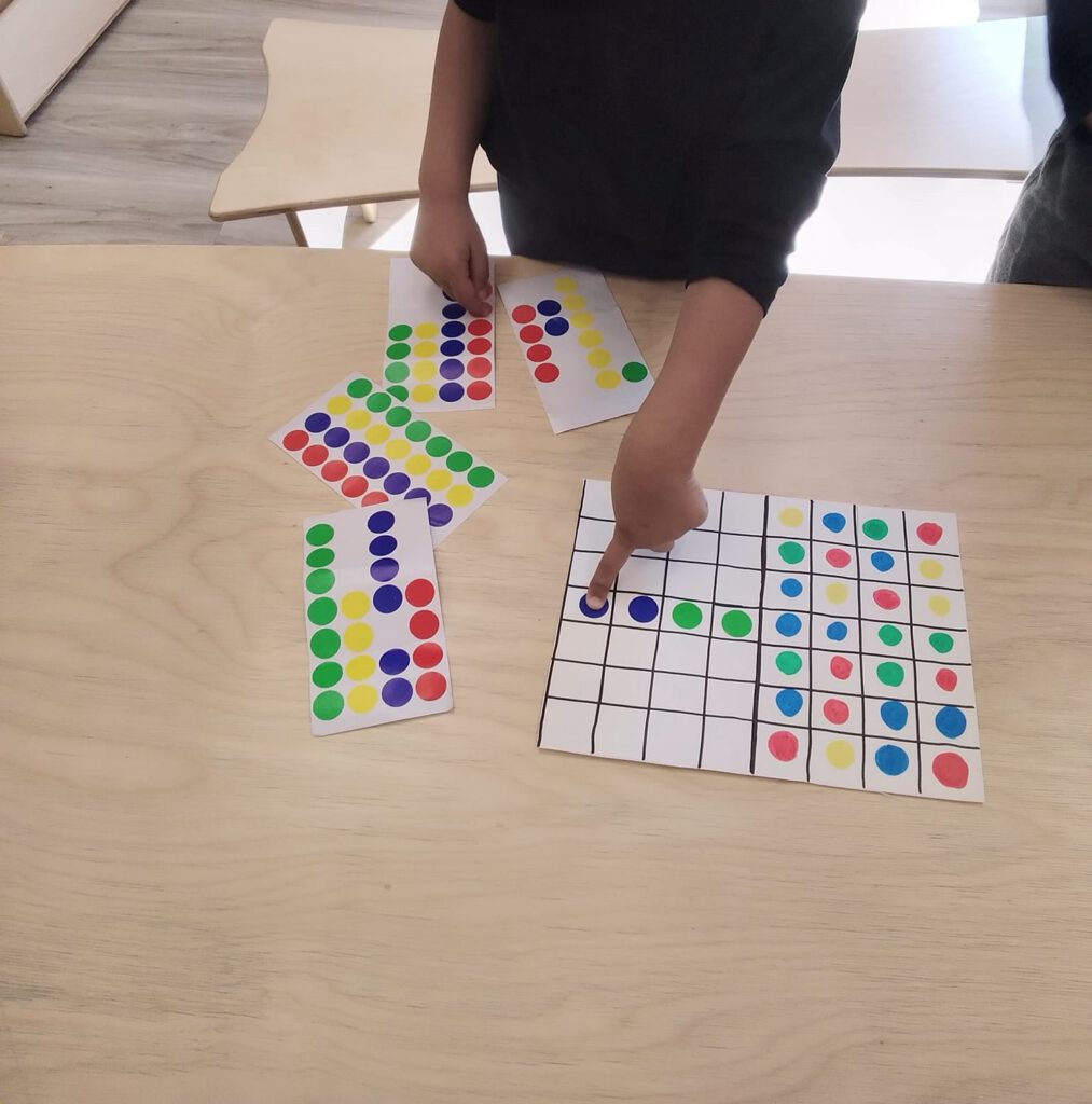 Our Tiny Scholars worked on their cognitive skills with a pattern activity like this one! Their job was to match the pattern on the opposite side with the coloured stickers provided….