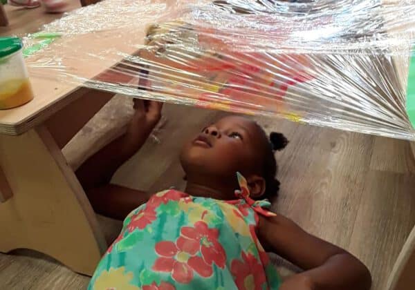 Who says we need to sit at the table to paint….why not paint underneath it!!!